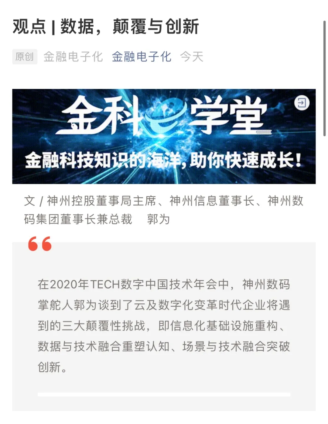 郭为:数字原生企业将遇到认知颠覆 数字化转型面临四个核心方向